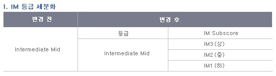 IM이 응시자들의 분포도가 가장 높은 레벨이라 1,2,3으로 다시 세분화하더군요.