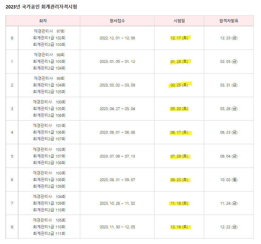 2023년 재경관리사 시험일정