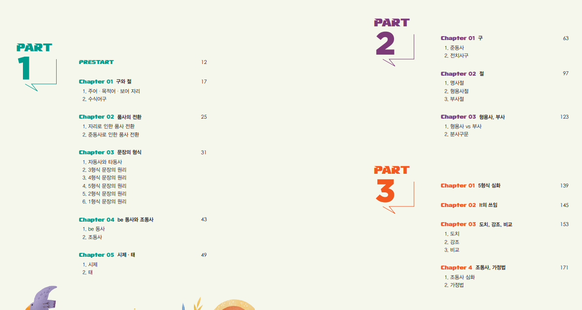 이명학쌤의 목차를 보면 그 흔하디 흔한 관계대명사라는 말 조차 없다. 그냥 '절'이라는 파트에 들어가 있을 뿐이다. 이명학샘도 아는 것이다. 어차피 문법은 독해를 돕는 도구이며, 개괄적으로 이해해도 충분하다는 것을 말이다. 그래서 우리가 알고 있던 문법에 대한 고지식한 관념들을 모두 타파하고 진짜 수능 영어의 본질을 배울 수 있는 강의라고 생각한다.
