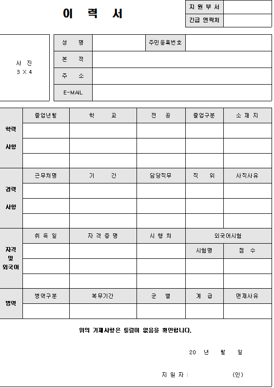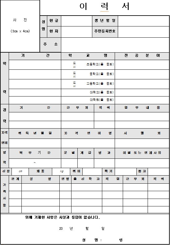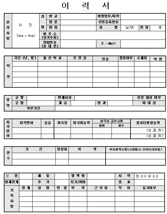 이력서 다운로드가 안된다면 댓글로 남겨주세요~