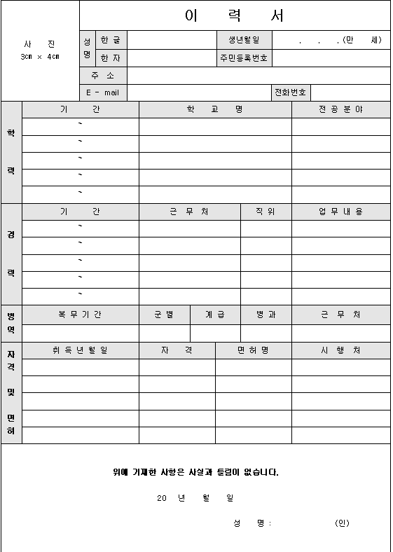 취업에 필요한 이력서 양식 다운로드를 HWP 파일로 공유합니다. 알집으로 묶어놓았으며, 아래 양식 사진을 보시고 마음에 드는 이력서를 선택하시면 됩니다.