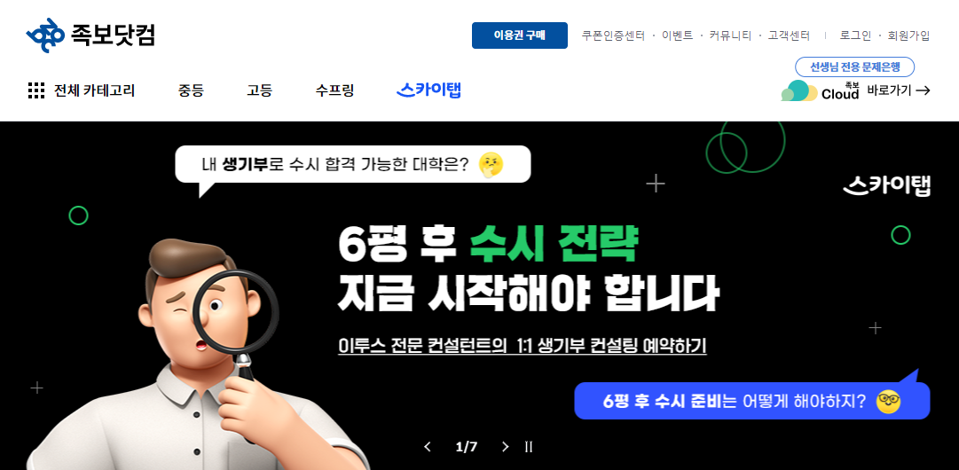 족보닷컴 또한 나무 아카데미처럼 포인트제로 중등 고등 내신 및 수능 기출문제들을 받아보실 수 있습니다. 상당히 오래된 역사를 자랑하는 기출문제 사이트로, 학교 맞춤형 AI 기출문제, 자체 과목별 기출문제 등을 제공합니다. 다양한 기출이 필요한 분에게 추천드리는 사이트입니다.